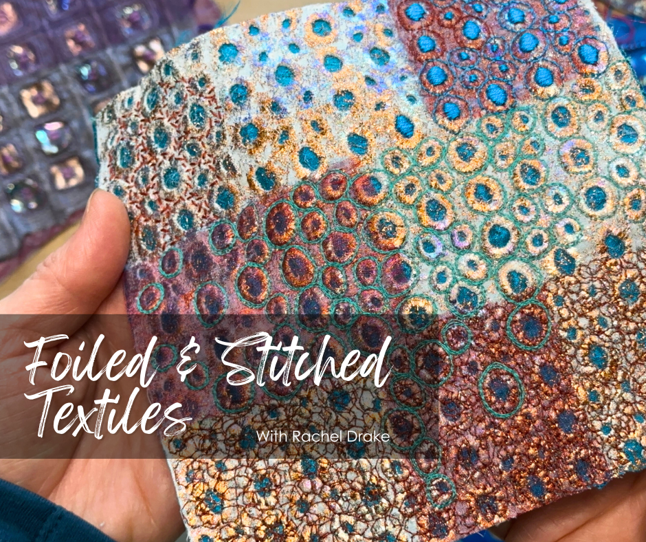 Combine the shimmer of foil with the texture of stitch. This creative, hands-on course shows you how to layer, embroider, and experiment with simple techniques to create richly textured textile surfaces