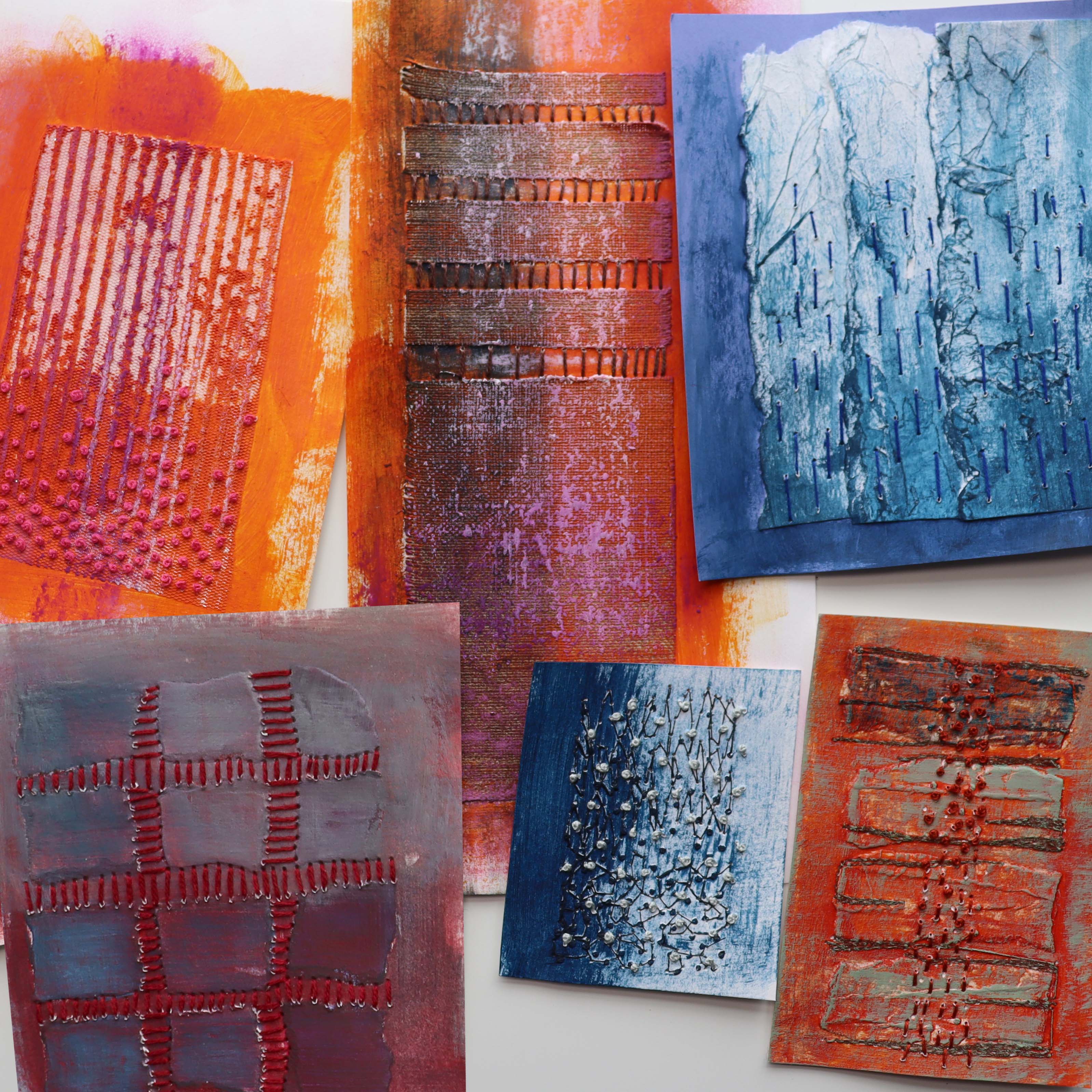 Using paints, oil pastels and other materials, learn how how to enhance textured collage, using stitching to add embellishment. I will guide you through the techniques, explain how colour works and how to build up a library of samples ready to be used in future projects.