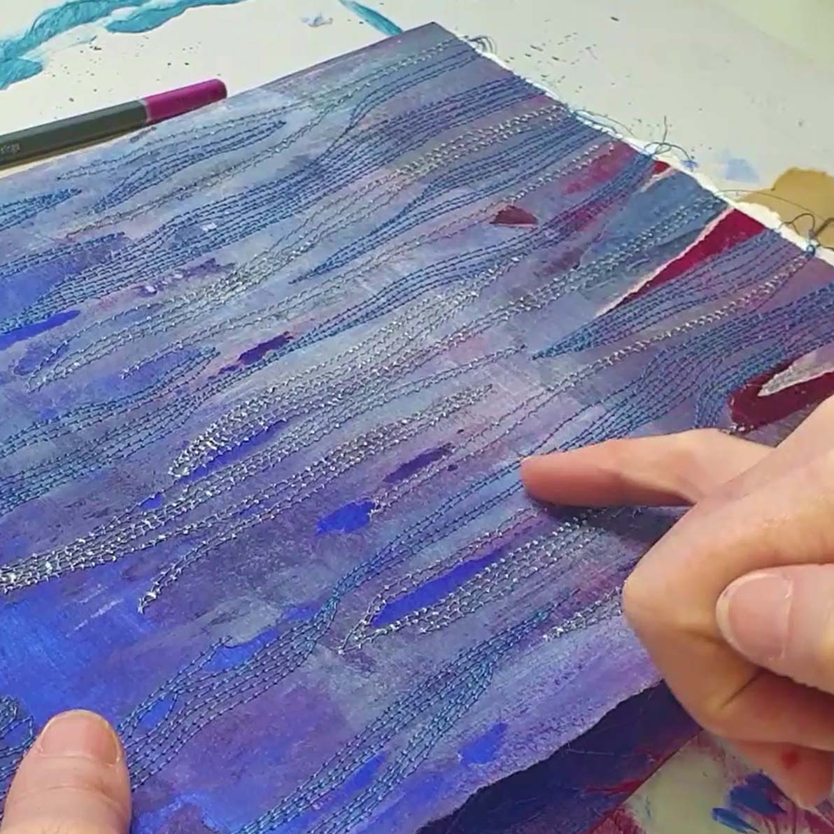 See how you can work on paper, using simple stitching to effectively enhance a piece of coloured collage.