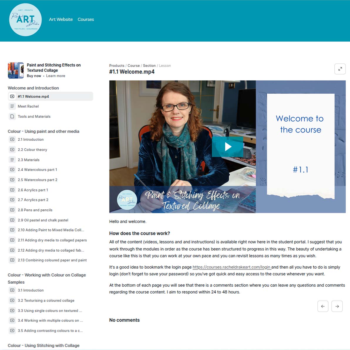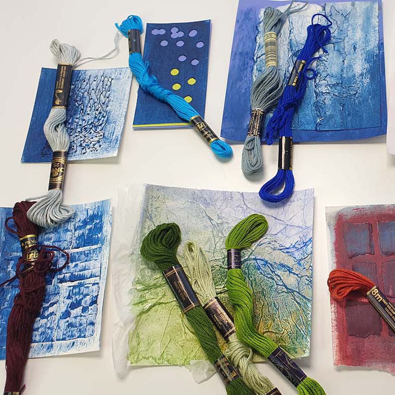 Materials needed for collage and embroidery are discussed within the course. The materials list is available to preview and download in the contents section above and has links to suppliers. You can complete the course with some basic materials such as paper, paints and embroidery threads, however, investing in a wider range of materials will give you more scope.