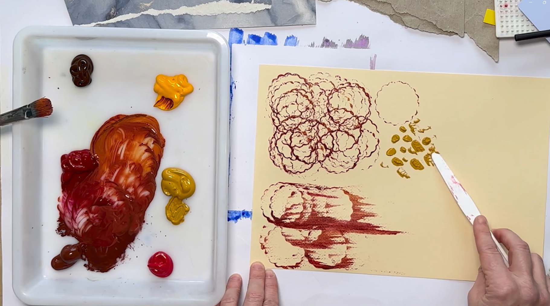 Creating rich painted papers filled with pattern, texture, and colour