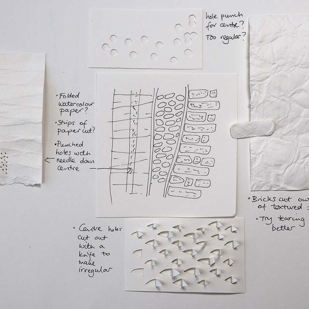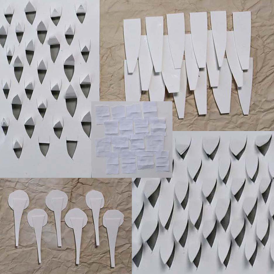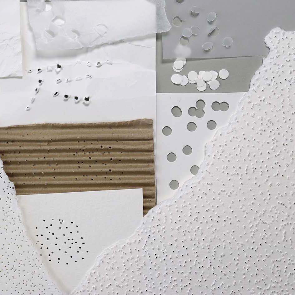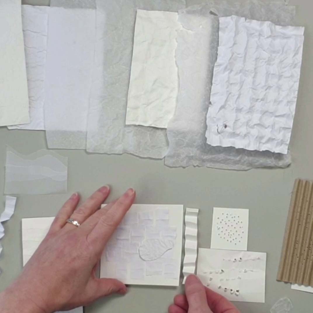 Explore paper manipulation, cutting, layering, repetition and how to combine textures to develop into a collage composition.