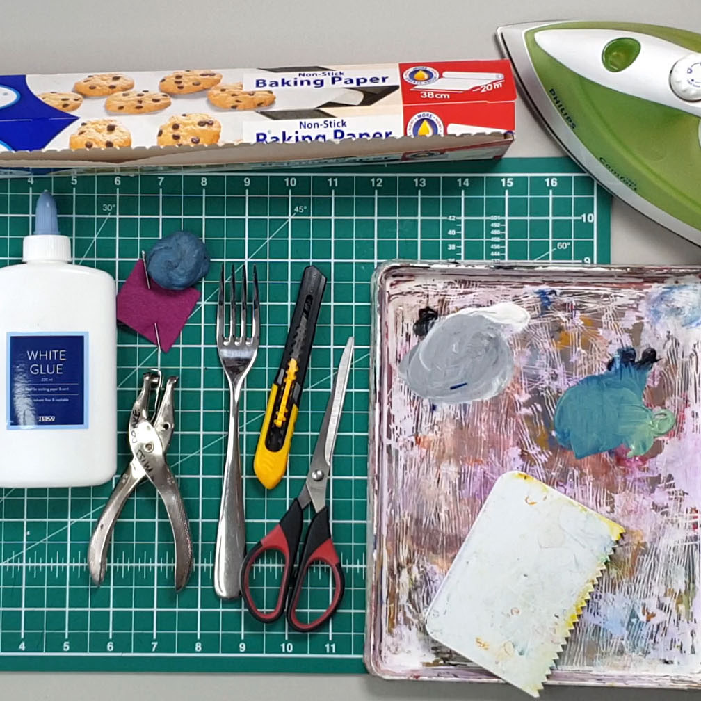 You will be using simple everyday tools to create interesting textured papers and surface patterns.